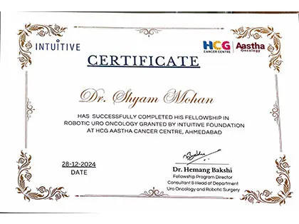 - Fellowship in Uro-oncology and Robotic Surgery – HCG Cancer Centre, (Ahmedabad) (2023-2024)